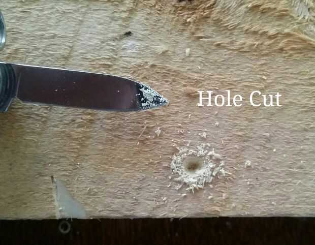 El corte del agujero es el menos utilizado para la mayoría de los proyectos y básicamente es utilizado para hacer los agujeros. utiliza el punto y simplemente hundir el punto a la madera y tuérzalo alrededor hasta que tenga la profundidad del agujero y el ancho que desee.