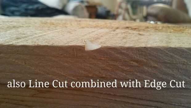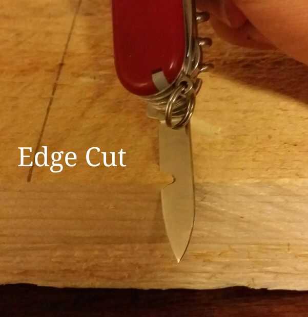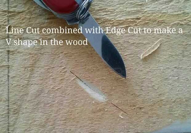 El corte del borde utiliza la curva de la navaja y se hace básicamente excavando en la madera, el ángulo en el que excavar en determinará la profundidad del corte. Este es bueno para quitar un montón de madera y también se utiliza con otros cortes para efectos específicos.