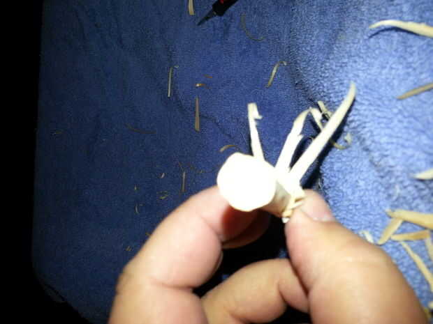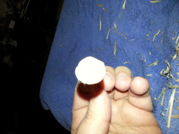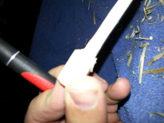 Si está usando un palo redondo, este i bastante simple. Utilice la cuchilla para afeitarse la parte superior e inferior de la porción de yema de la vara hasta que se completa en.