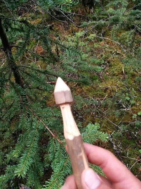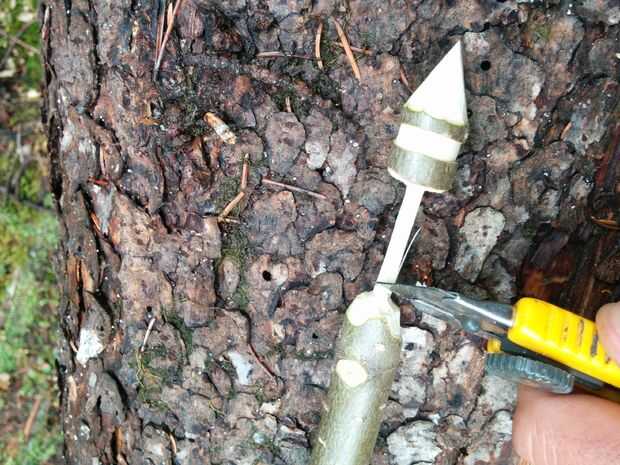 Continuar a tallar hacia abajo manteniendo la manija en el centro hasta que la empuñadura tan pequeña como se desee. Ahora cortar el mango a la longitud que desea. Recuerde que siempre puede hacer el mango más corto si se desea más tarde.