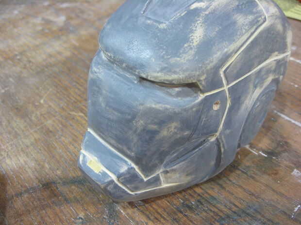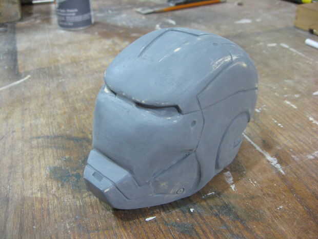 le di una mano de imprimación de spray, que reveló muchas manchas pequeñas. Estas pequeñas grietas y agujeros y tal se llenaron de madera relleno, frotado en realmente bien y entonces la cosa entera fue lijado y preparado otra vez. Fui a través de este proceso tres o cuatro veces.