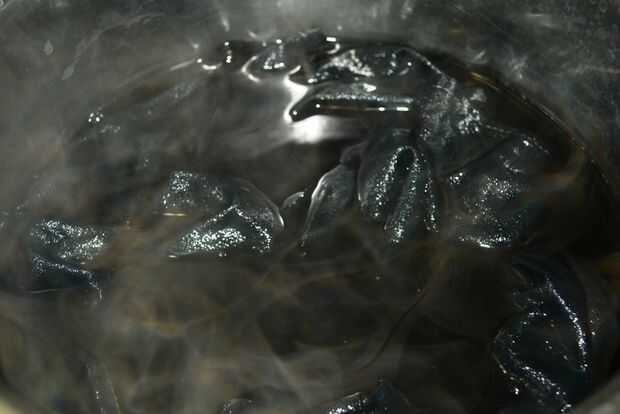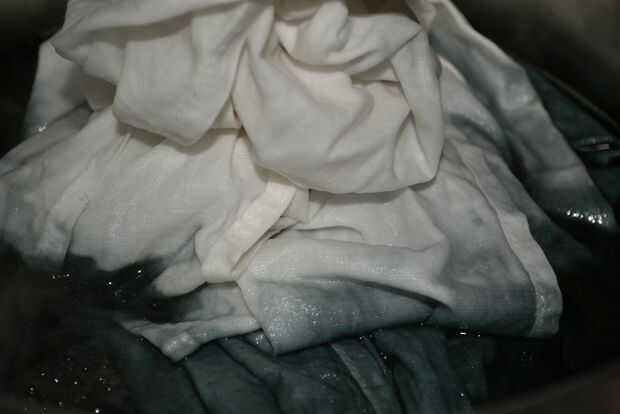 Añadir a tela al agua colorante. Asegúrese de que no está doblado o anudado. Se mueven alrededor y asegúrese de que está completamente empapada. Podría tomar algún tiempo para su tela a tono negro.