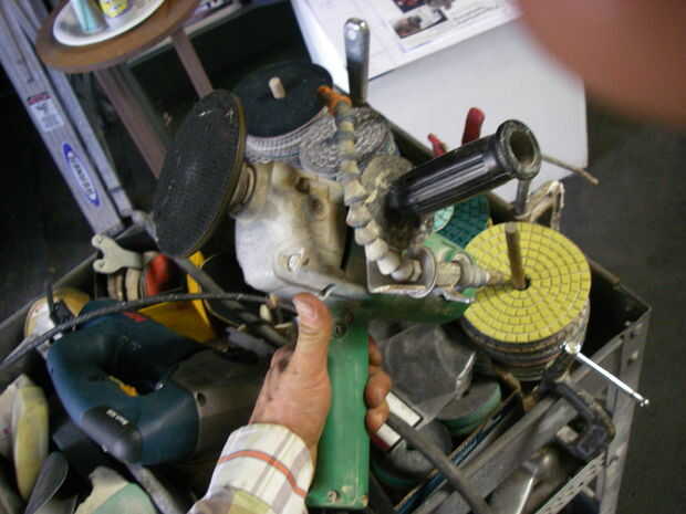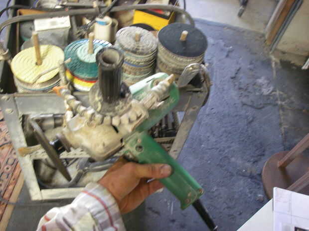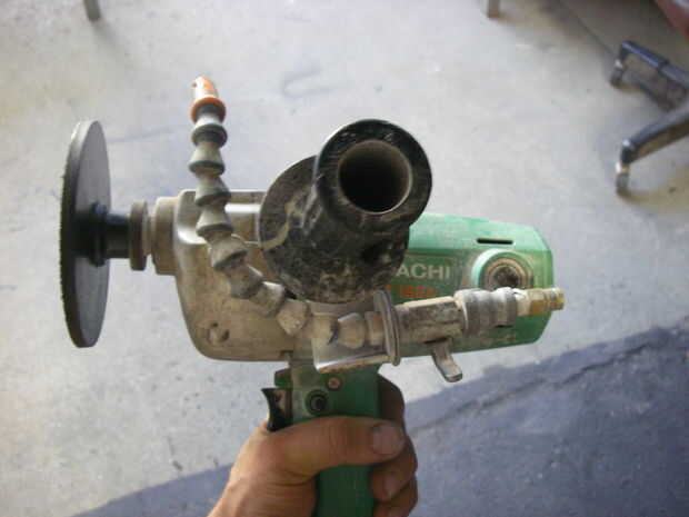 La foto final es un pulidor comercial que alimenta de agua hacia abajo el centro del eje.
