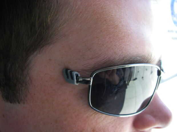 Sean C. Upton en el Monterey Bay Aquarium ha inventado una nueva forma de mantener sus gafas en el rostro. Cortar los auriculares cortos, poner almohadillas de goma suave en los extremos y los utiliza para sujetar los huesos de su templo. Ha sido usarlos de esta manera durante un mes o así y gusta mucho. Es muy agente Smith.