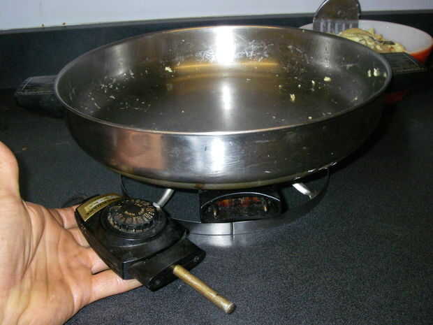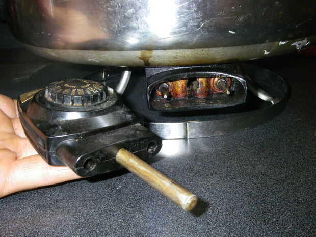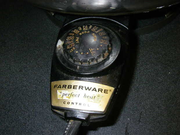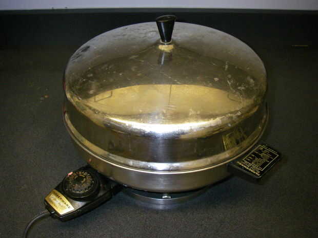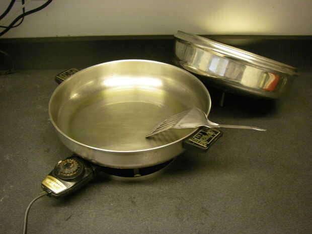 Aquí es un sartén eléctrico superior de la edad media. Tiene un termostato.