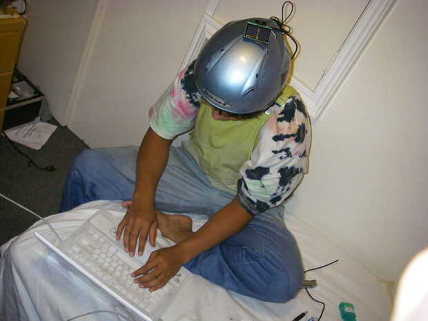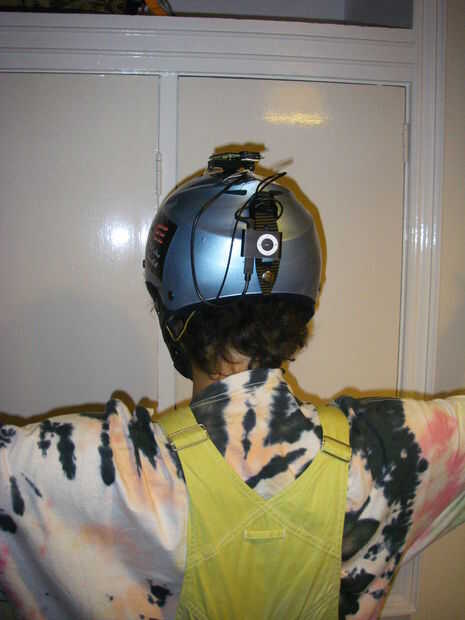 Estrella no tiene que cambiar las baterías en su reproductor de mp3 ya. Aquí está su casco de swank música accionado solar. Tiene auriculares de línea aérea permanentemente conectados a los auriculares, el reproductor de mp3 conectado a la parte posterior del casco y un panel solar en la parte superior para cargarlo. reemplazó el chip de boost en los cargos de panel solar ahora el mp3 player USB.