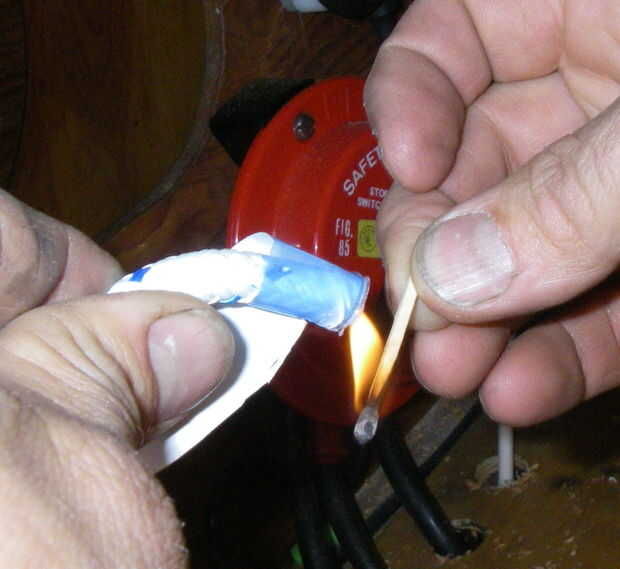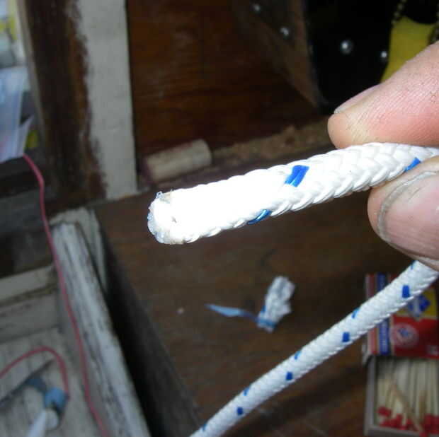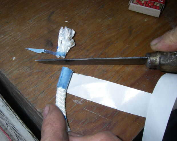 3. fundir el final con un fósforo, manteniendo la cinta.