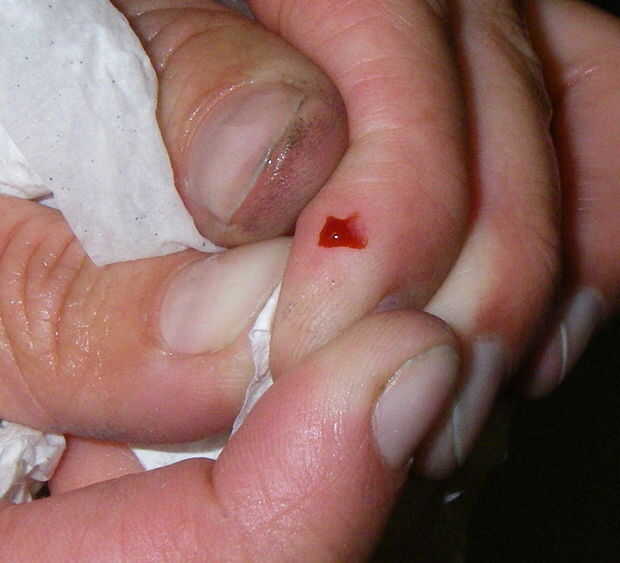 Ella aplicó la herida con una toalla de papel y detiene el sangrado.