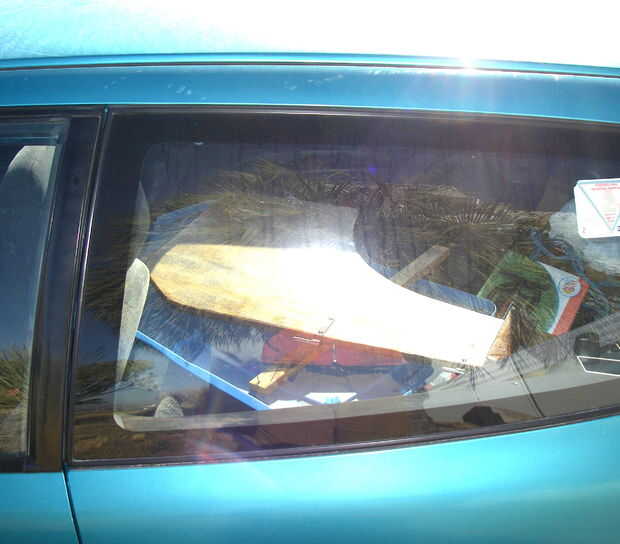 En estas fotos estoy curado de un timón, un par de brazos laminados y un bate de béisbol roto.