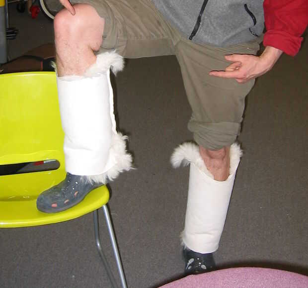 Para hacer un par envolver el lana alrededor de la pierna y averiguar lo ancho tiene que ser firmemente pero no demasiado apretado. Recorte. Coserlas en tubos. Es más fácil si usted empujar el forro dentro del tubo en lugar de dejar que haga de la costura. Poner en y disfrutar de la comodidad.