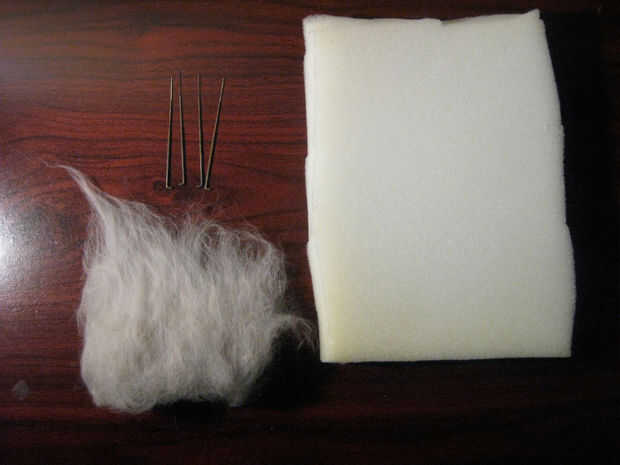 * Agujas de fieltrar seco - aquí son agujas triangulares tamaño 38, bueno para las fibras courser. consulta este artículo para recomendaciones en diferentes tamaños.