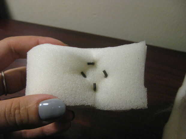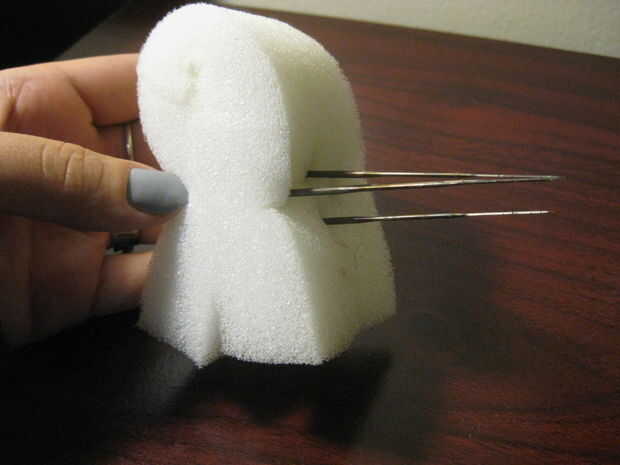 Se pueden comprar agujas, dobla un pedazo de espuma y poked cuatro agujas que utilizar como titular. Funciona bien y ahorra dinero!