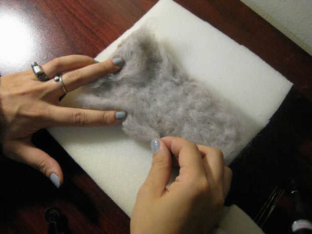 Una vez que perfora las fibras de un lado, levante la pieza y voltee. Las fibras será algo atrapado en la espuma, así que ten cuidado y tirando de él para mantenerlo todo intacto.