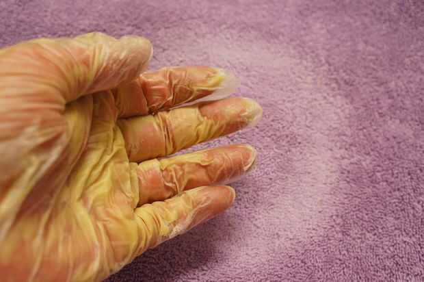 Sumergir las manos en la mezcla y deje que la forma de la cera y sumergir las manos un par de veces más que la cera cubrir las manos o los pies.