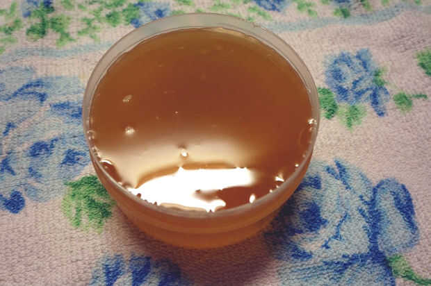 Mientras la mezcla está caliente decidí probar la fórmula. Si usted no esta entonces adelante y vierta la mezcla en los frascos, siguiendo las instrucciones en el paso 9. Aunque las imágenes muestran que este es grueso trabajó en mis manos secas muy bien. Mi último lote tenía un poco más cremosa textura como una salve. Los cuatro últimos cuadros en este grupo muestra la última fórmula que hice y está cerca de una cera de parafina. Si es demasiado fino puede Agregar una pequeña cantidad de cera para espesar para arriba. Será mucho más fácil ligar si la mezcla es demasiado fina a muy gruesa. Por cierto el aceite de coco y miel huelen tan bien ~