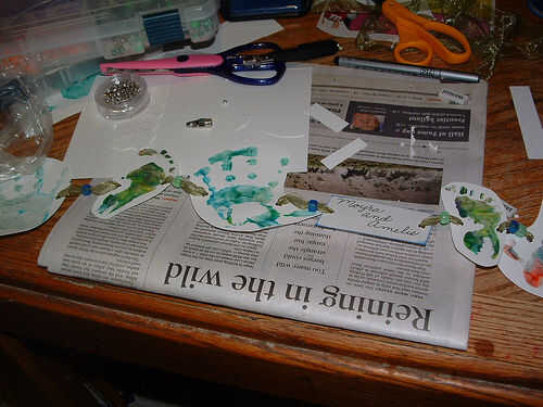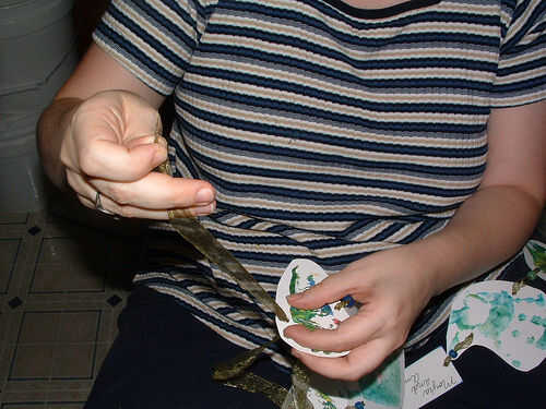 Diseño siguiente, su guirnalda y lugar tus impresiones y etiquetas de palabra en el orden que desea que aparezca en la guirnalda. Elija granos u otras adiciones ahora y colocarlos en orden de modo que usted puede conseguir una sensación general de tu pieza y cosas de línea para el tendido. Tomar la cinta y comenzar a enhebrar las piezas juntos. Con sus impresiones, hilo de rosca hacia abajo desde la parte superior de la izquierda y luego hacia arriba desde la parte trasera a la derecha para que la cinta no cubre tu impresión preciosa. Tire la impresión a lo largo de la cinta suavemente, dejando algunos en el extremo de un lazo o lazo para colgar. Dejé sobre un pie en cada extremo. Cadena de los granos y palabra clave de la misma forma, tirando con cuidado hasta el final y dejando 1/4 de pulgada a 1 pulgada entre piezas.