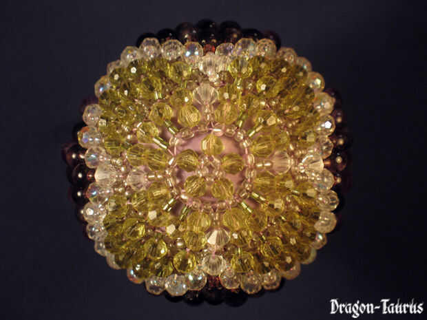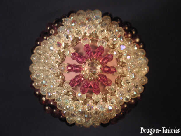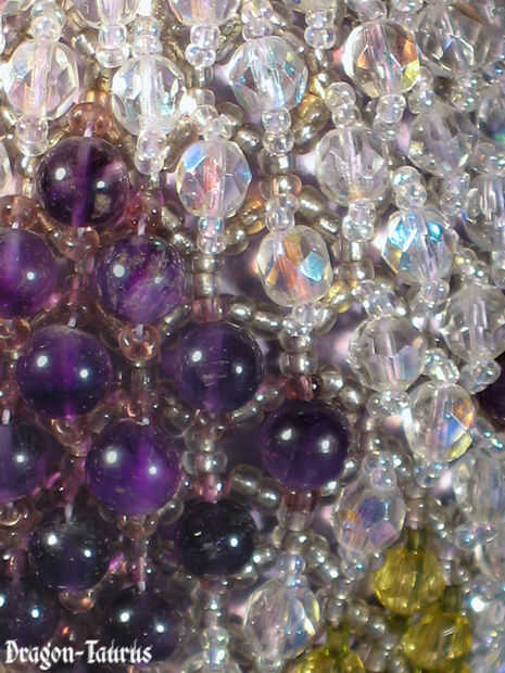 Amatistas en base de madera torneada y pintada, cristales de Swarovski y granos de cristal