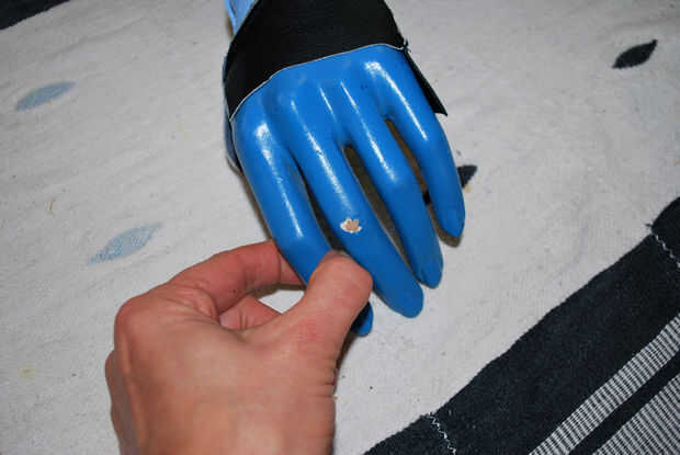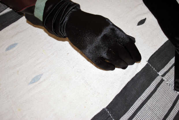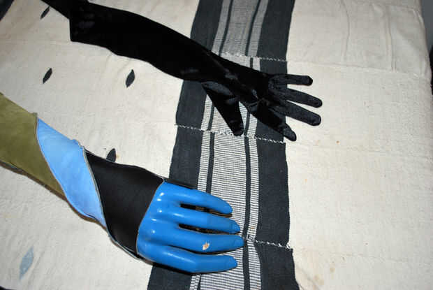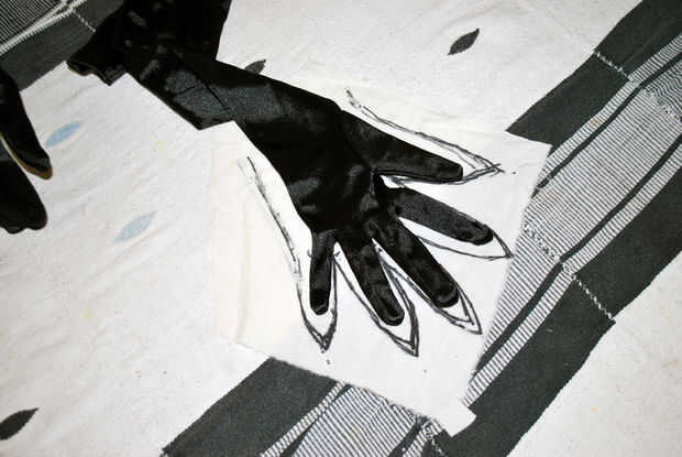 Tuve un par de guantes de ópera spandex queda de un evento de traje, así que yo intentaría usar éstos como patrón. Estacioné el guante la forma y concuerda bastante bien con el mínimo estiramiento. Que podría evitar los problemas que tuve con mi enorme spandex el patron para el cuerpo de Kali! El cuero que planeó sobre el uso era delgado y elástico.
