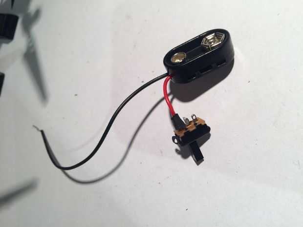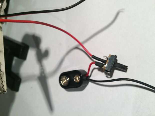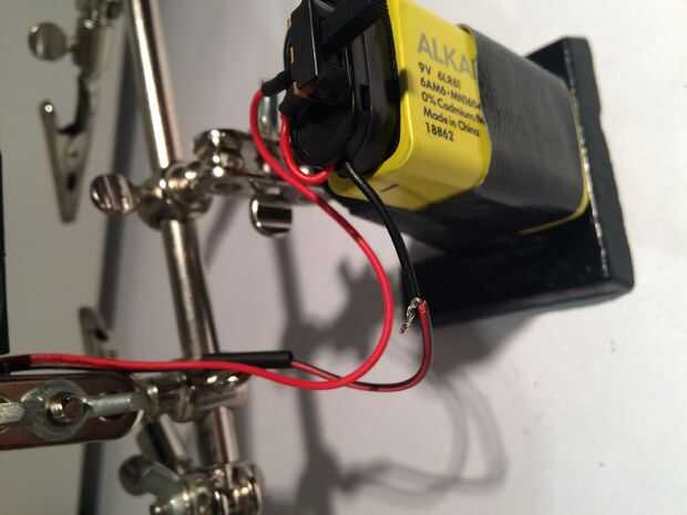 la batería de 9v al pie de la cinta (cinta de la pizca de batería-lado en la izquierda como en la foto).