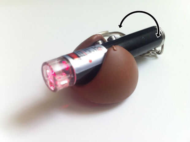 Ahora simplemente el puntero el botón debajo de la hebilla de las fuerzas y se enciende el diodo láser.