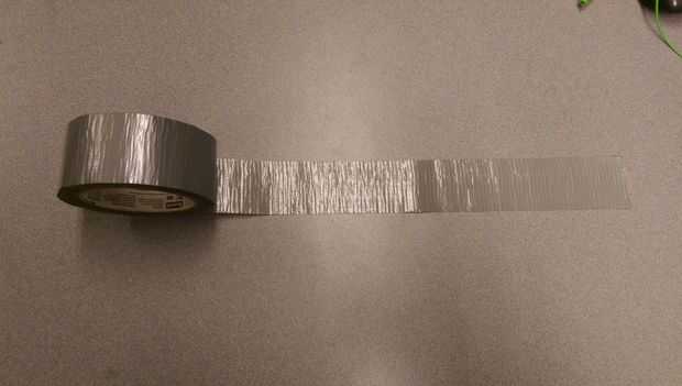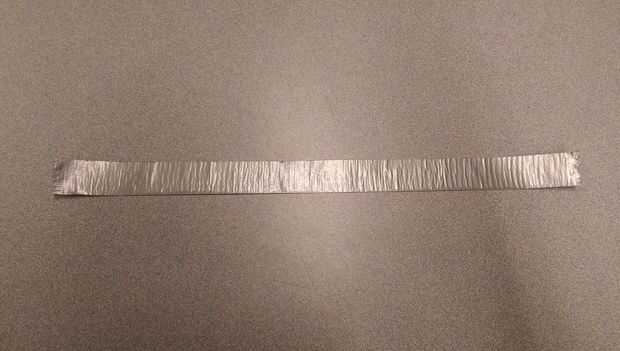 Empiece con una tira de cinta adhesiva alrededor de 12 pulgadas de largo. Doblar por la mitad longitudinalmente. Tenga cuidado para evitar las arrugas.