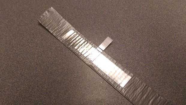 Pegar las tiras de aluminio a la banda de cinta del conducto como se muestra por lo que la pestaña se pega por el lado.