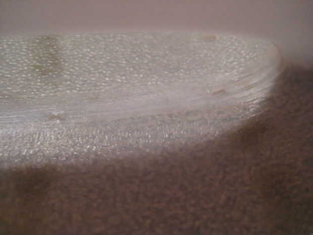 Cosa varias puntadas a través de la tela y el plástico en la misma línea de centro, incluyendo puntos de sutura en los dos extremos del asa.