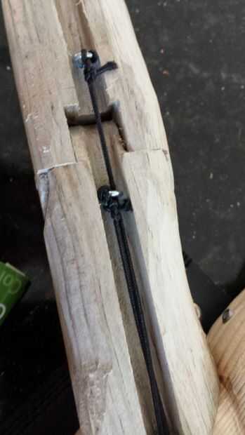 En la parte trasera, yo básicamente lo mismo con la cuerda elástica. Sin embargo, también corrí un segundo cable hasta el segundo gancho superior para mejorar la resistencia de la presión hacia atrás. Asegúrese de que el elástico está apretado, pero no tan apretado los dedos no curl.