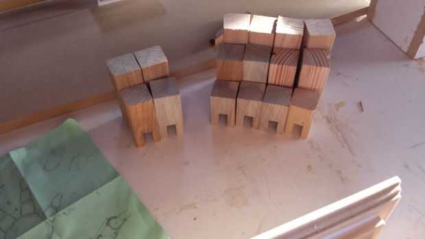 Después de haber cortado mi 2 x 4 en tamaño 1.5x1.5, pude entonces a cortar las porciones. Procede a cortar las ranuras para las articulaciones. Aparejado a la Sierra de mesa con un. 5" cortar para ejecutar a través del centro de la madera como se muestra. Esto se redujo a 3/4". Este es el extremo hembra. Cada pieza necesita un hombre y un extremo hembra, tan sólo una parte fue cortado. (hemos tenido algunas variaciones en este proceso.