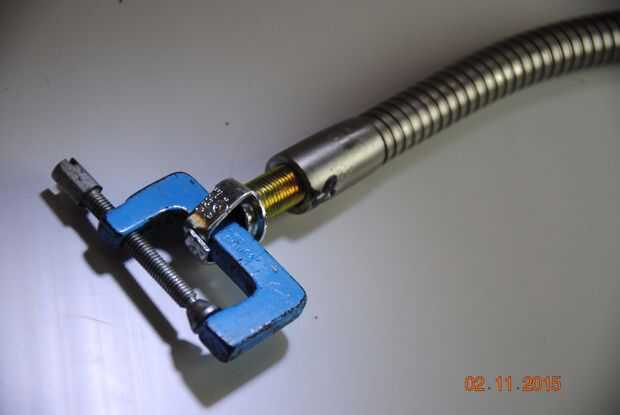 Había enroscado en el brazo flexible y doblar las puntas alrededor de la abrazadera. (Cuadro #1)