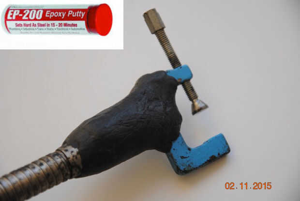 Decidí usar masilla de Epoxy para ayudar a fortalecer la conexión entre la abrazadera y el brazo flexible.