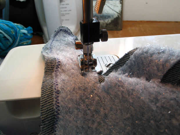 Con una máquina de coser utiliza el zig-zag y apliques la textura más pequeño en el denim.