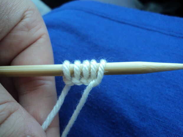 Comenzar el patrón por el bastidor de 5 puntadas. Me gusta poner a un dpn, tejer la primera hilera, luego distribuir los puntos de sutura entre los otros dpns y conectar la ronda. Debe colocar un marcador de punto aquí. Me gusta esta posición por lo que es en medio de mi dpns, por lo que no se deslice apagado mientras está tejido sobre las otras agujas.