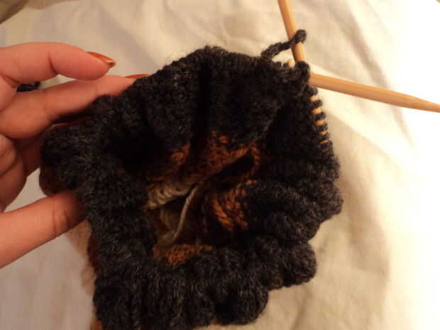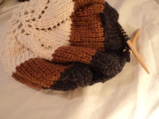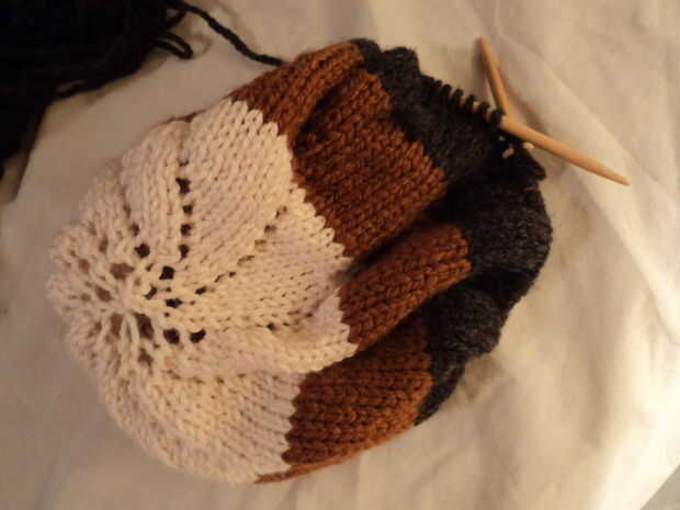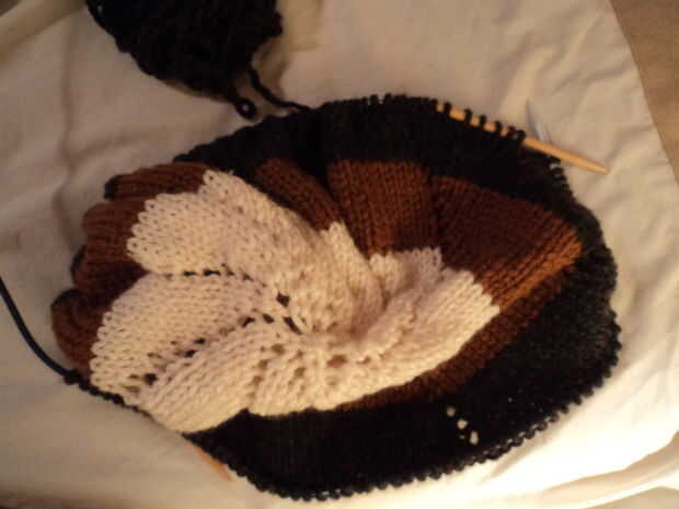Después de que se han tejido algunas rondas más, su manta probablemente comenzará a parecer un raro sombrero porque se cosecha a lo largo de las agujas circulares corta.  Finalmente las agujas será tan atiborradas de cosido que tienes que cambiar a un conjunto mayor.  Usé el mismo método como el último paso para cambiar a un par de agujas circulares con un cable más largo.  Esto es algo que probablemente tendrá varias veces durante este proyecto como sus rondas hacen más grandes y realmente viene bien tener las agujas con cables intercambiables.  Una vez que se conecta a un cable más largo, debe buscar más y más como lo será algún día una manta.  Una vez más, asegúrese de que no pierdes cualquier puntos de sutura de los extremos de las agujas mientras se están transfiriendo los puntos de sutura.  Casquillos de aguja sería útiles para esto.