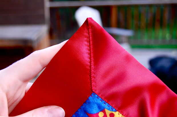 Repetir este proceso dos veces más. Para el último rincón, pin, pero no coser aún.