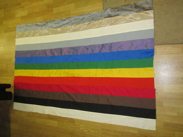 Comenzar con una tira de blanca y negra. No hay necesidad de perder tu tiempo de clavos, solo ponen los bordes juntos y coser un margen de costura de 3/8". Longitud entera del hierro, con los márgenes de costura planos, luego planchar a un lado. Esto ahorrará tiempo y provocación, como se pone progresivamente más grande. Continuar coser tiras de tabla de planchar, coser.
