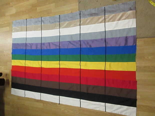 He marcado de las líneas de la columna con el atascamiento de costura estrecha. Realmente afila hacia arriba! Cada columna debe ser de 11.5". Puesto que el enlace es. 25", los espacios de columna además de las 5 piezas de enlace deben ser igual ~ 72". PIN y coser en. Pulsa el enlace.