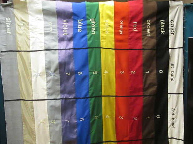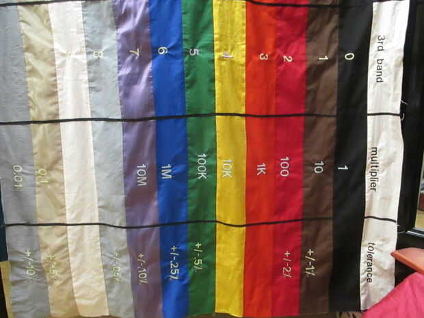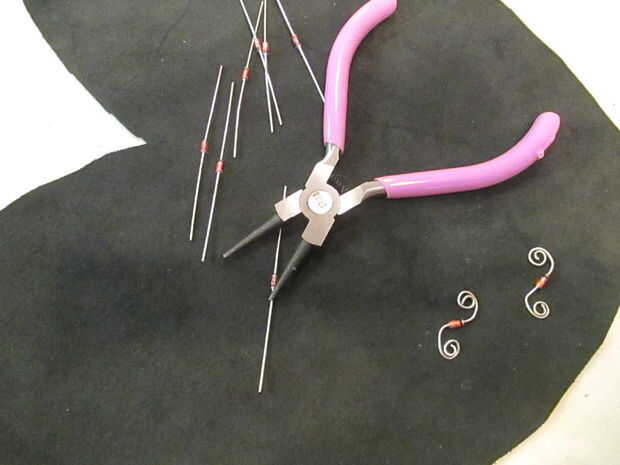 Yo no tenía un símbolo de porcentaje, así que pensé que sería lindo hacer swirlies con algunas resistencias y luego los coser a mano.
