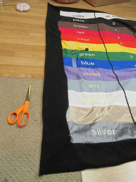 Ahora era finalmente hora de coser el paño grueso y suave de manta en la tabla de código de resistencia!