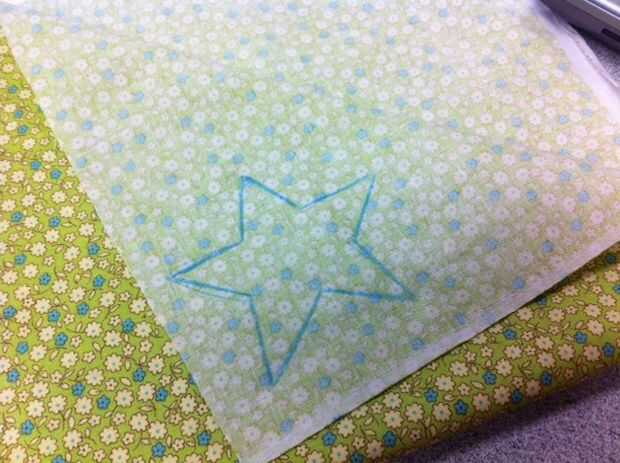 2. Aplique una hoja adhesiva en la parte posterior de una hoja de papel de aluminio. Usando el mismo patrón de estrella, cortar formas de estrella de la hoja de lata.