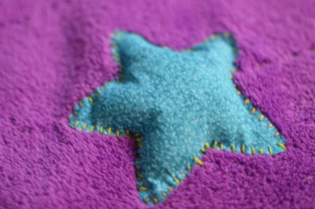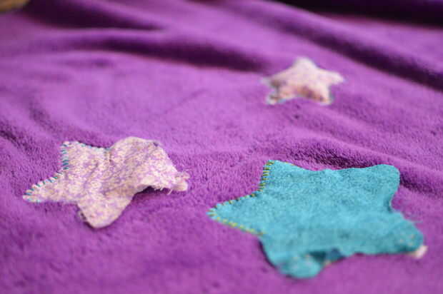 Consejo: Los bordes de mis estrellas empezaron a fray, así que deseo que había hecho algo para evitarlo. Hizo las estrellas para la manta más difícil de coser. Forro polar o fieltro probablemente no tendría este problema.