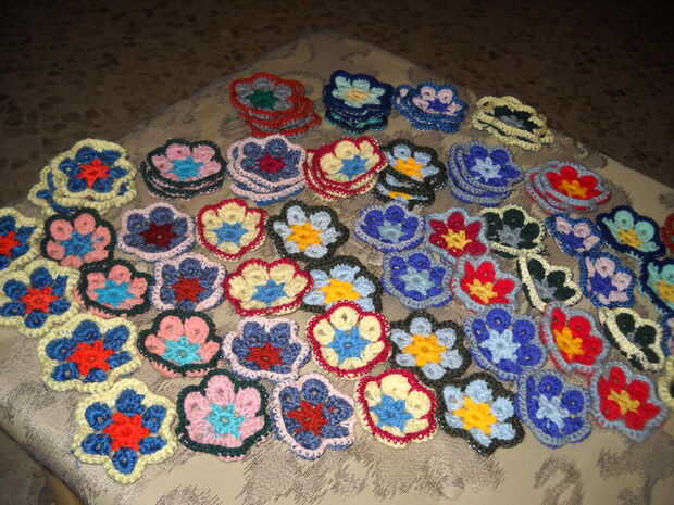 No tanto flores como usted necesita hacer una manta del tamaño que desee. Porque lo hice por mi gato, hice 7 x 12. Puede que como grande o pequeño como quieras.