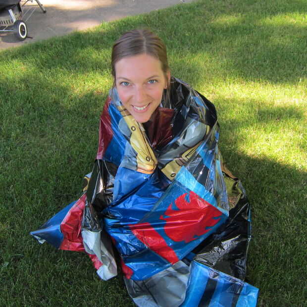 Recientemente, mi hijo tuvo un cumpleaños temático de superhéroes fiesta con globos de mylar de superhéroe de tamaño natural. No podía llevar a tirar mucho material y encontraron el uso perfecto para él. Resulta que el mylar es muy fácil trabajar con y hace una gran manta de la emergencia hecho en casa! Una manta de emergencia ayuda a regular la temperatura corporal para evitar/contrarrestar la hipotermia.