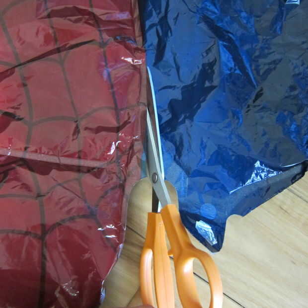 Usando unas tijeras afiladas cortan los globos aparte. Las partes del cuerpo tendrá las costuras. Trate de seguir las costuras en cuanto a salvar los pedazos más grandes de mylar posible.