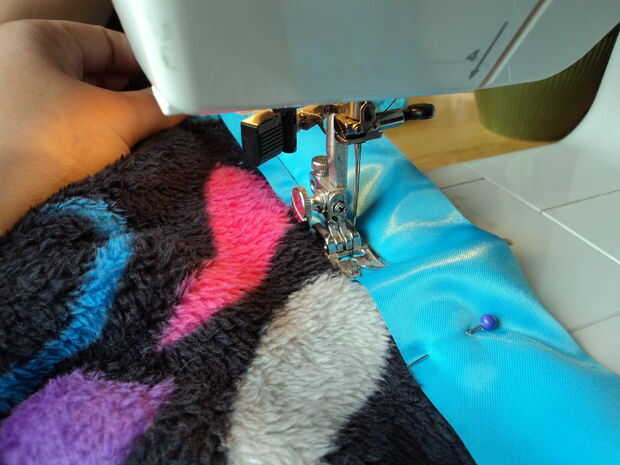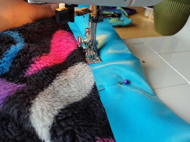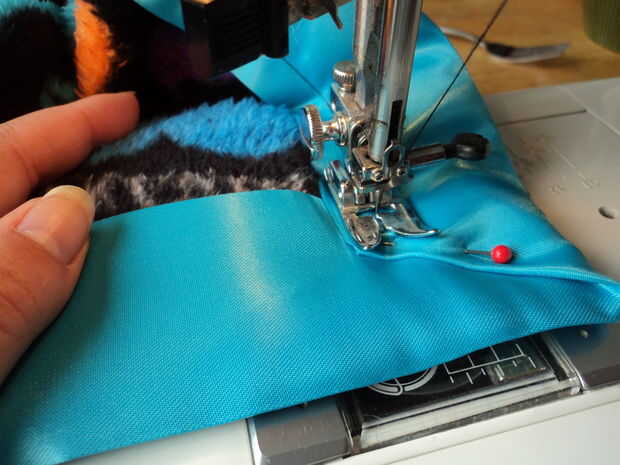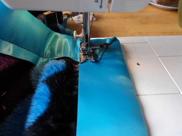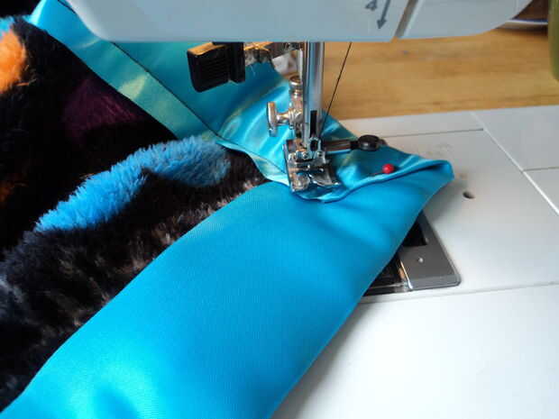 Para doblar una esquina, coser 3/8 de pulgada a 1/2 pulgada más allá de la parte siguiente, asegúrese de que la aguja está abajo y a través de la tela, eleve el prensatelas y gire a la tela alrededor de la aguja hasta que se encuentre en la dirección que desee ahora a coser y luego continuar.