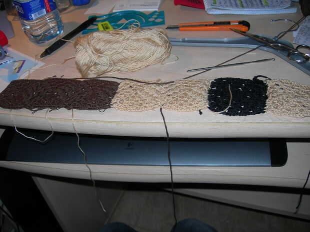3- Hacer otro doble ganchillo y agudos en la misma puntada de cadena. Ahora tienes el primer lado terminado.