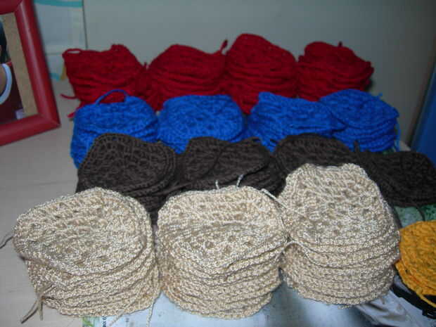 12- Repita la primera esquina de la ronda anterior, y luego hacer 3 doble crochet/agudos en el espacio siguiente y continuar así hasta llegar al final de la ronda. Todos los asaltos será como este, pero con un número creciente de espacio entre las esquinas. No debe hacer puntadas de cadena en cualquier otro lugar, pero en las esquinas