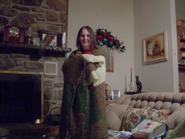 este es un chal que hice (secreto - solamente en la noche o cuando ella se había ido) para mi esposa de 33 años para la Navidad. Punto para ella sobre todo durante mis viajes a la clínica de Mayo, donde aprendí que mi situación de salud ha hecho que