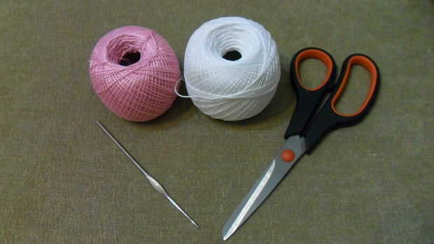 traer 50 gm blanco algodón hilado, hilado de algodón de color rosa de 30 gm y su aguja.
