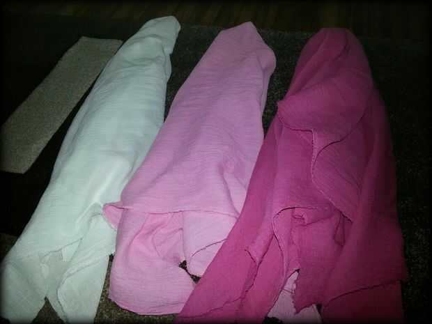 Puede que necesite comprar alrededor de Jo-ann el ancho correcto de la tela. Algunos muselinas solo ir a 28" de ancho que me enteré de la manera más dura... Tuve que comprar alrededor de 3 diferentes Jo-anns para encontrar la dimensión correcta pero les prometo que vale la pena la búsqueda!He encontrado lo suficiente de este gran sin blanquear algodón musulmán para hacer tres tonos diferentes (se muestra en la foto) de albunes y comprar tinte de la tela en "Rosa pétalo color de rosa". Dejé uno blanco.